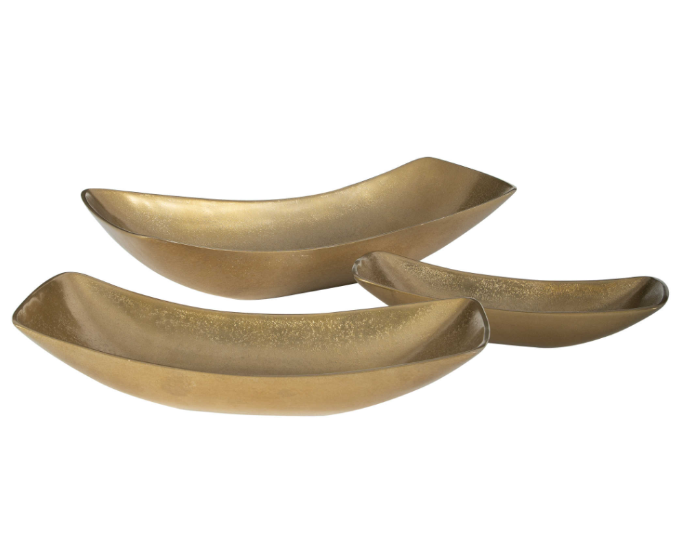 These textured cast aluminum bowls feature an antique brass finish and can be used as individual pieces or in a set of 3.