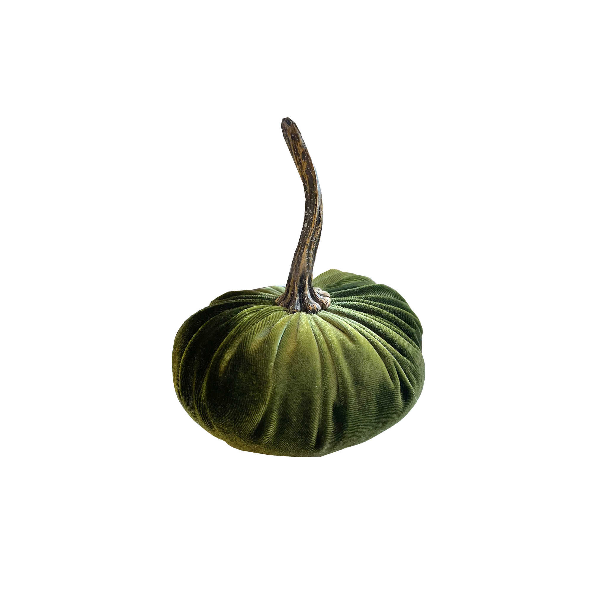 These little handmade velvet pumpkins are so fun and sophisticated for fall! The stem is resin, realistic, and very durable. Available in assorted colors.